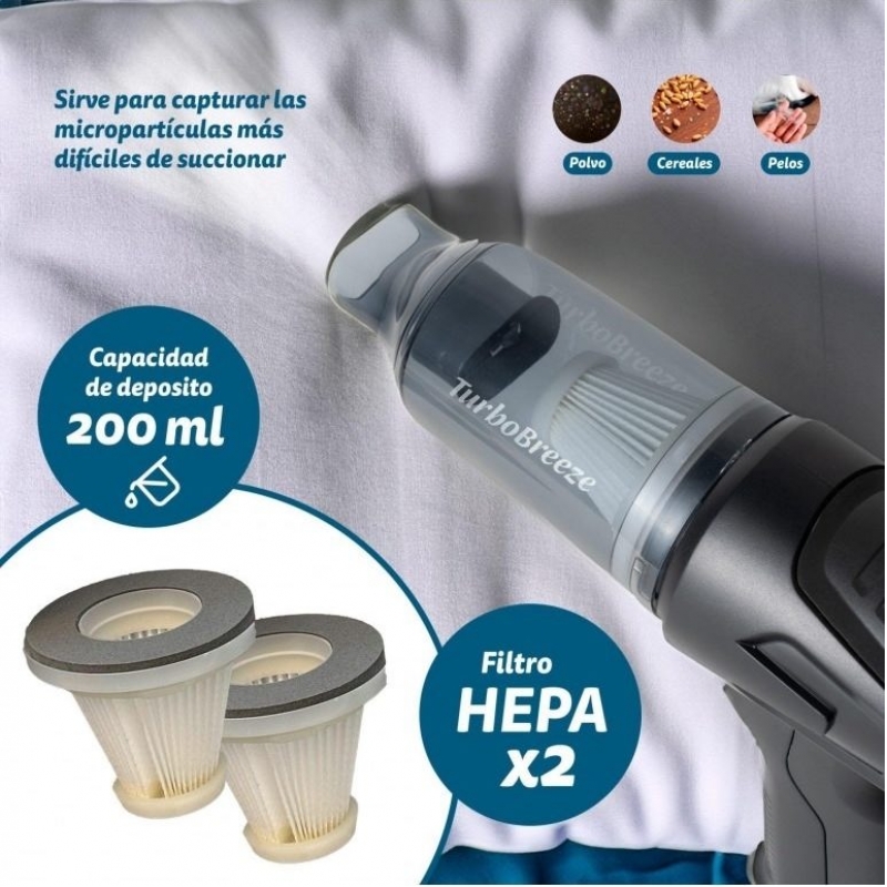 Cuenta con una potente succión de 12KPA y un motor de 80W, capaz de eliminar fácilmente polvo, migas, arena o pequeños residuos. Su filtro HEPA de alta eficiencia ayuda a retener partículas finas y alérgenos, contribuyendo a mantener un ambiente más limpio.