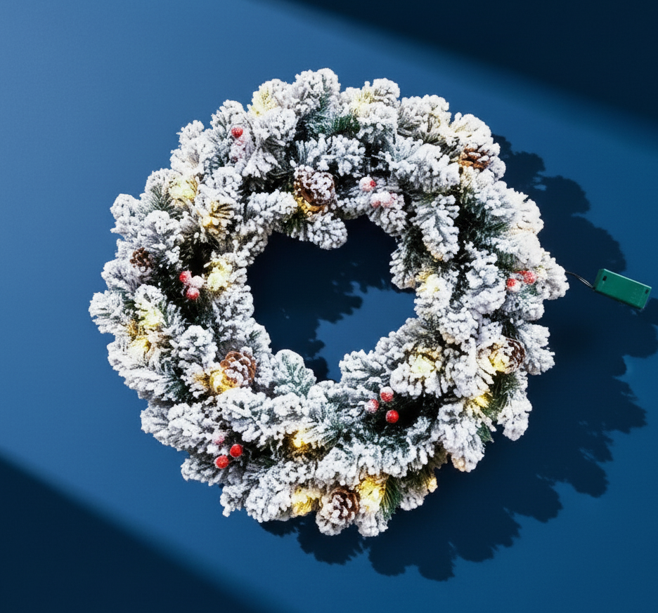 La Corona de Navidad Decoración 20 Leds Nieve, con piñas y bolitas rojas es el detalle perfecto para dar un toque festivo y elegante a tu hogar. Con un diámetro de 60 cm, combina materiales de alta calidad y un diseño natural que evoca el espíritu navideño. Incorpora 20 luces LED cálidas (2700K) de bajo consumo que funcionan con 2 pilas AA (incluidas), ofreciendo una iluminación suave y acogedora sin necesidad de enchufe. Ideal para colocar en puertas, paredes o escaparates, su acabado nevado y los detalles en rojo y verde aportan calidez y encanto a cualquier ambiente.
